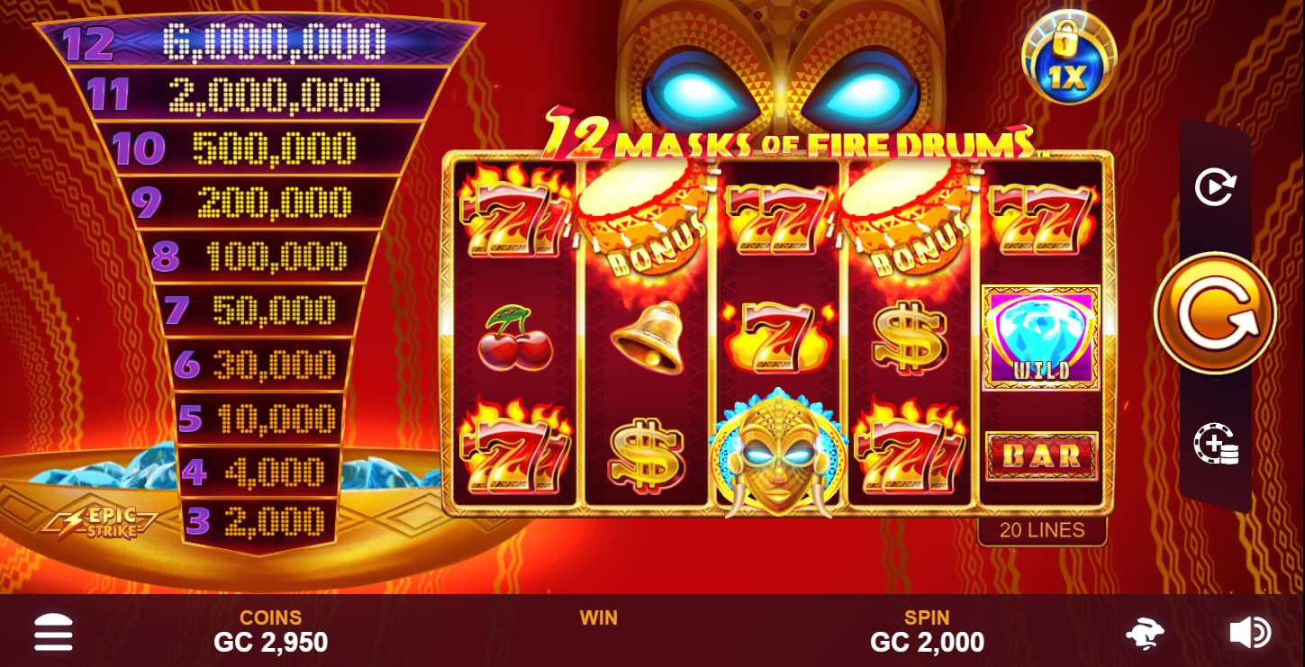If you want a slot with atmosphere and layered features, 12 Masks of Fire Drums is a solid pick. Enjoy the visuals, explore the bonuses, and keep your spin amounts aligned with your Gold Coin balance, while remembering that results are always RNG-driven and based on chance.